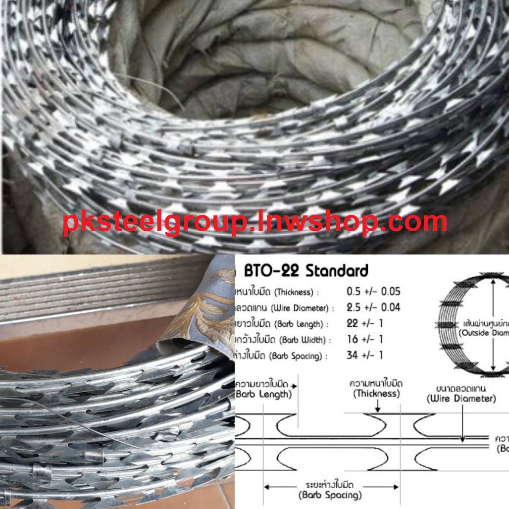ทางเรายังมีจำหน่าย ลวดหนาม หีบเพลง ซึ่งลวดหนามตัวนี้จะใช้เหล็กกล้าแรงดึงสูงชุบสังกะสี มาผลิต ลวดหนามหีบเพลง ขนาดมาตรฐาน วง 50 ซม. รุ่น BTO-22 จะเป็น สเปกมาตรฐาน ยาวม้วนละ 10 เมตรโดยประมาณ ลวดหนามหีบเพลงมี แถบแผ่นใบมีดหุ้มจับบนแกนลวดคล้ายหนาม และนำมาขดเป็นวงกลมไขว้หลายวงเป็นเส้นคู่ สามารถยืดออกคล้ายสปริงและเก็บเข้าเป็นขดอย่างเดิมได้ ใช้สำหรับเป็นเครื่องป้องกันและกีดขวาง ตามบ้านเรือน สถานที่สำคัญต่างๆ เช่นโรงงานอุตสาหกรรม สถานที่สำคัญต่างๆของทางราชการ เป็นต้นก็จะมีสเปกเฉพาะเหมือนกันไว้จะอธิบายต่อไปครับ