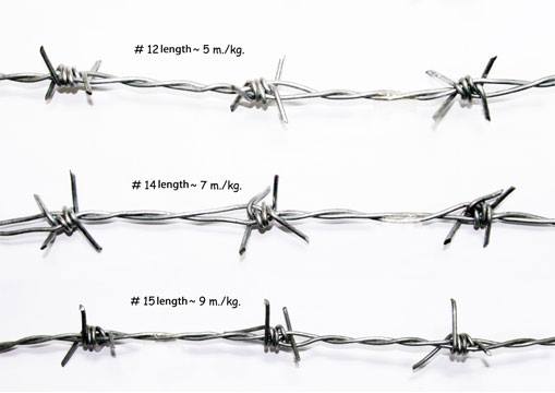 - ลวดหนามเส้นเล็ก จะใช้ลวดเบอร์ 14 หนา 1.9-2.0 มม. : ใช้สำหรับการป้องกันทั่วไป